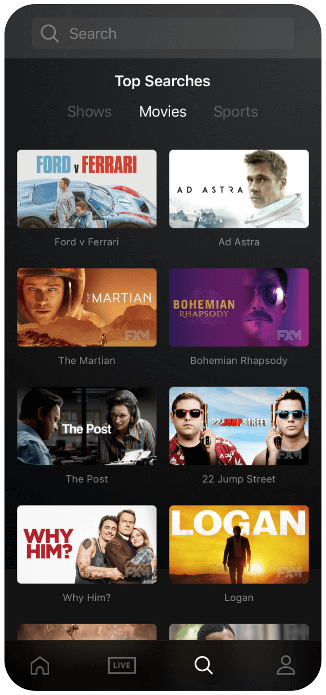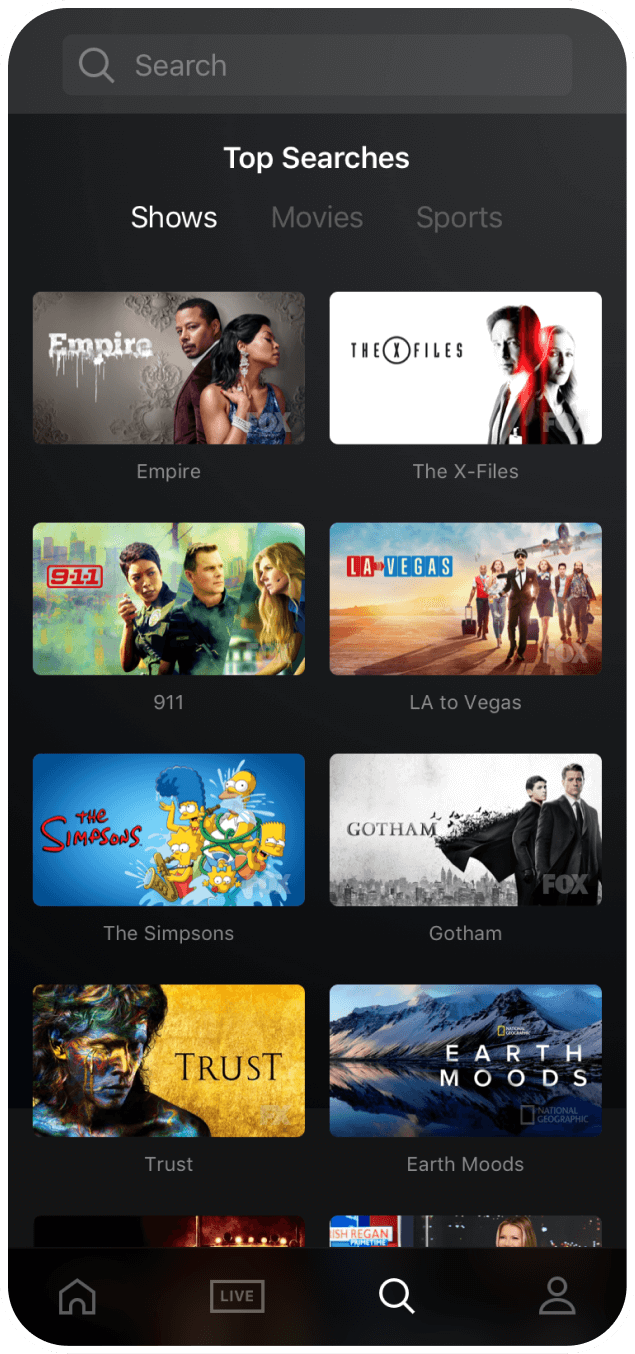 It’s important to note that the first iteration of this app was designed to satisfy the needs of four studios (FX, Fox, NatGeo, and Fox Sports), each with its own preferences for how their content should be browsed, displayed, and showcased. This led to a user experience that initially satisfied the studios, but not the end users.