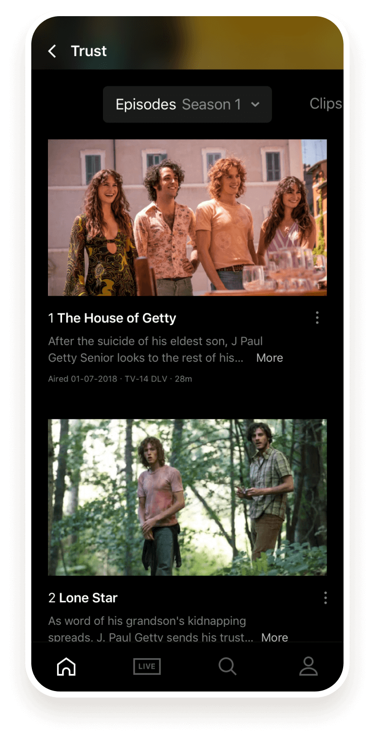 To clarify the content structure, category navigation was added and content was reorganized based on card-sorting research. A promotion area was also created to highlight new content and must-see live events. As live video is a key part of the Fox business, the “Live Now” carousel was added, proving particularly valuable for sports fans. Another aspect of improving the watch and discovery experience included fine-tuning curated collections for better personalization based on the user’s viewing history.